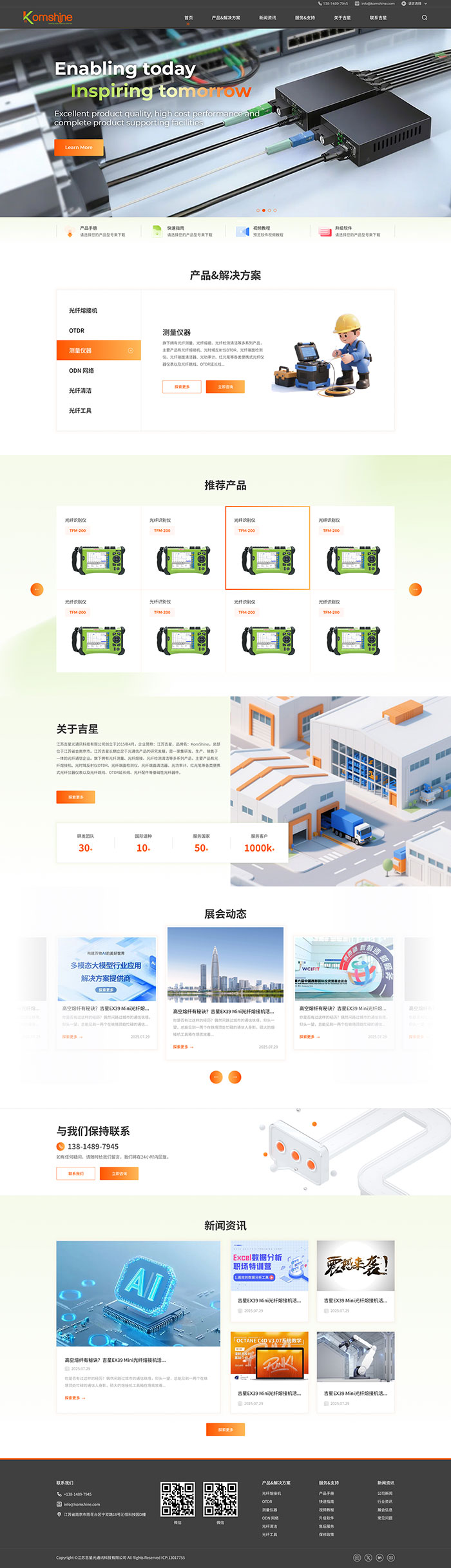 KomShine Technologies Limited (brand name: KomShine) was founded in April 2015. Headquartered in Nanjing, the capital of Jiangsu Province, Komshine has long been committed to the research and development of optical communication products. It is a fiber optic communications company integrating R&D, production, and sales. It offers a wide range of products, including fiber optic measurement, fiber fusion splicer, and fiber inspection and cleaning. Key products include portable fiber optic instruments such as fiber fusion splicers, optical time domain reflectometers (OTDRs), fiber end-face inspectors, fiber cleaners, optical power meters, and VFL, as well as essential fiber optic components such as fiber patch cords, OTDR extension cables, and fiber accessories.