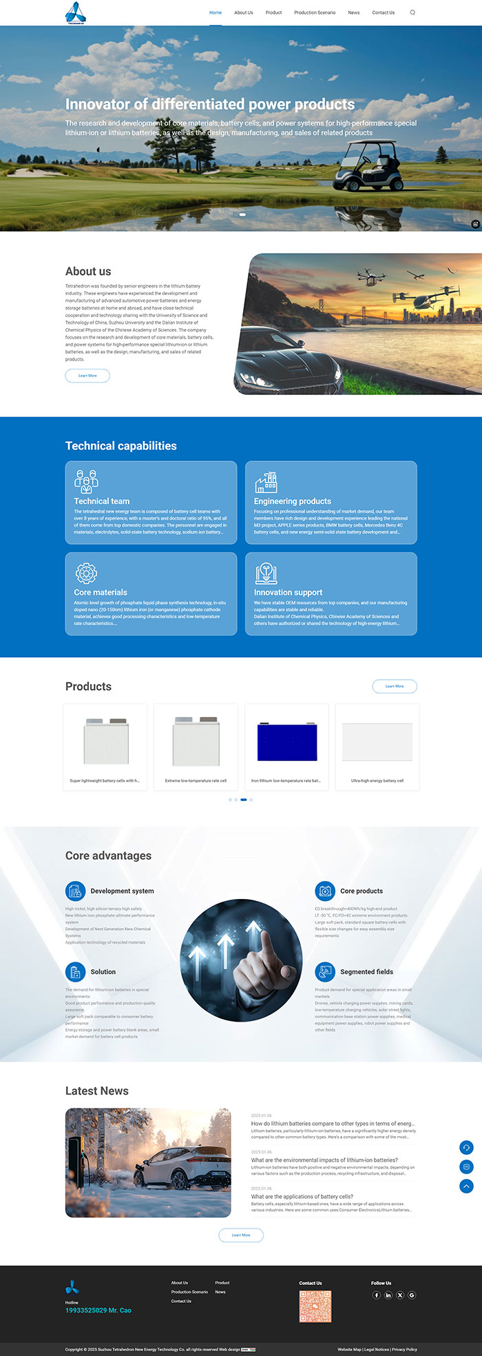 Tetrahedron was founded by senior engineers in the lithium battery industry. These engineers have experienced the development and manufacturing of advanced automotive power batteries and energy storage batteries at home and abroad, and have close technical cooperation and technology sharing with the University of Science and Technology of China, Suzhou University and the Dalian Institute of Chemical Physics of the Chinese Academy of Sciences. The company focuses on the research and development of core materials, battery cells, and power systems for high-performance special lithium-ion or lithium batteries, as well as the design, manufacturing, and sales of related products.
